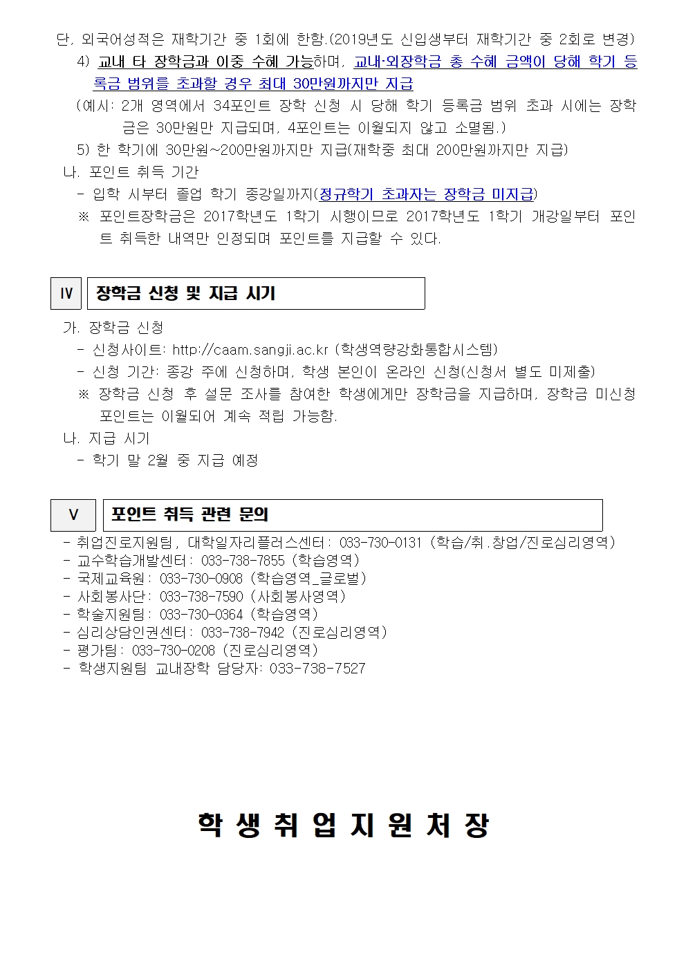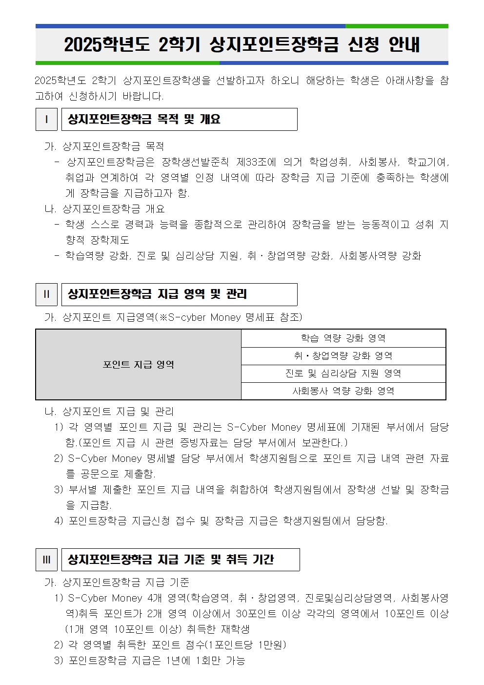 [교내장학] 2025학년도 2학기 상지포인트장학금 신청 안내